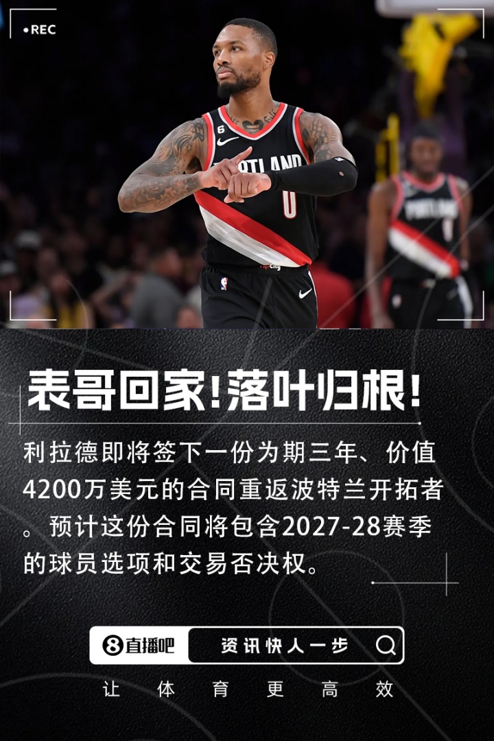 在职业生涯中首次有机会以自由球员身份选择目的地时,利拉德选择了回到他前11个赛季的辉煌之地,那里也是他的家人和孩子仍然居住的地方。