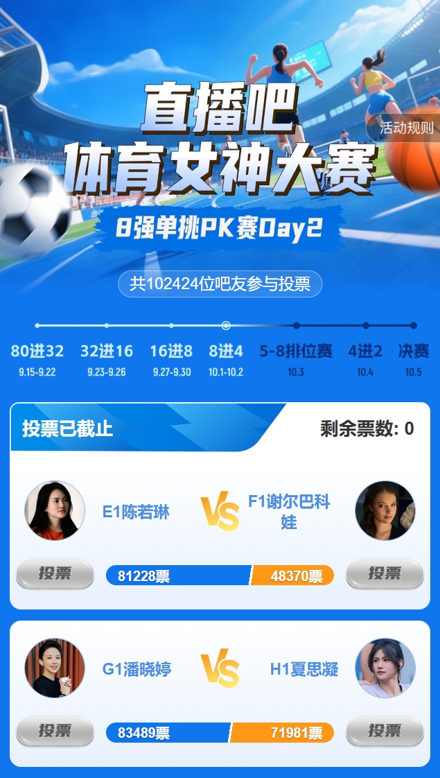本次小组赛共分为8个小组,每组10名候选者,共80位体育女神参与角逐。