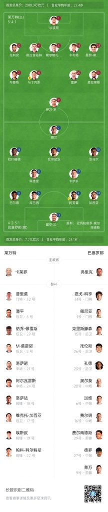莱万特替补:32-普里莫、2-M-莫雷诺、6-潘平、17-维克托-加西亚、18-洛萨达、19-埃斯皮、21-塞尔吉奥-洛萨诺、24-卡洛斯-阿尔瓦雷斯、27-科尔特斯、29-佩雷斯