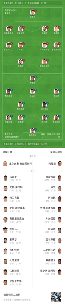 截至赛前,皇马3战全胜积9分,领跑西甲积分榜;皇家社会2平1负积2分,排名西甲积分榜第17。